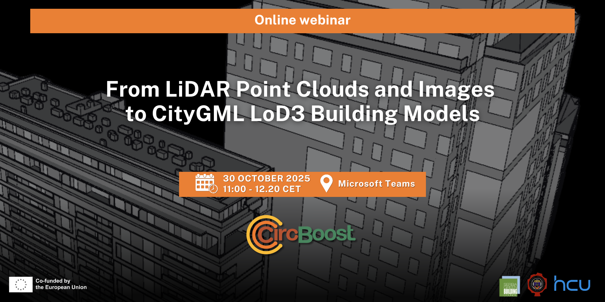 Pridružite nam se 30.10. na narednom Circ-Boost vebinaru, “Od LiDAR oblaka tačaka I slika do CityGML LoD3 modela zgrada” (naslov na engleskom: From LiDAR Point Clouds and Images to CityGML LoD3 Building Models).