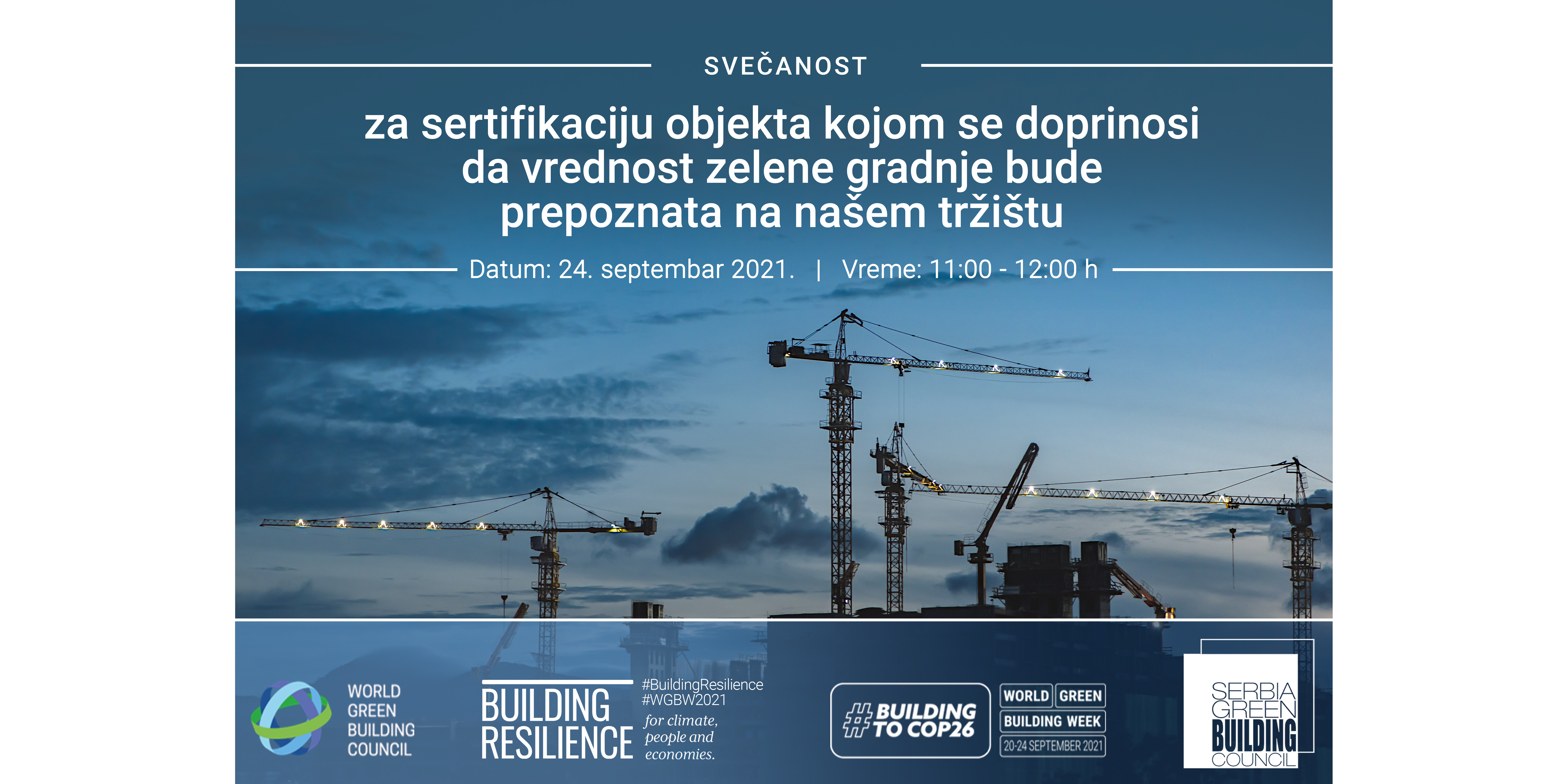 Svečanost promocije sertifikovanih objekata, je jedna od pet aktivnosti vidljivih na Globalnoj mapi, koje je Savet zelene gradnje Srbije realizovao u skladu sa ovogodišnjom Kampanjom Building Resilience for Climate, People and Economies. Tematske kampanje su deo Svetske nedelje zelene gradnje, koju SerbiaGBC, kao nacionalni član WorldGBC, već tradicionalno svake godine poslednje nedelje septembra obeležava.